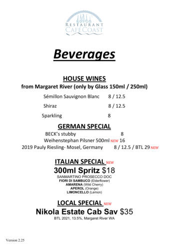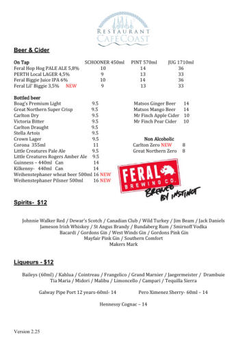 complete drinks list as a PDF: Drinks List (PDF)