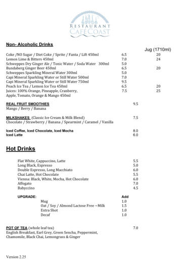 offer non-Alcoholic drinks, iced & hot drinks.